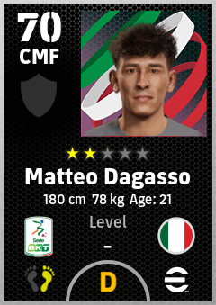. Matteo Dagasso is a Center Midfielder footballer from Italy who plays for Pescara Ba in eFootball 2026.
