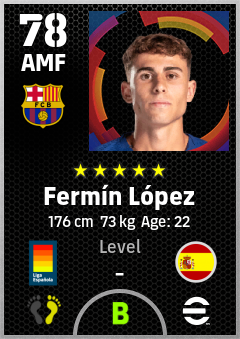 . Fermín López is a Attacking Midfielder footballer from Spain who plays for Fc Barcelona in eFootball 2026.