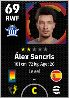 . Álex Sancris is a Right Wing Forward footballer from Spain who plays for Getafe A in eFootball 2026.