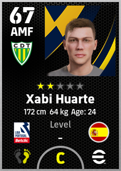 . Xabi Huarte is a Attacking Midfielder footballer from Spain who plays for Cd Tondela in eFootball 2026.