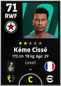 . Kémo Cissé is a Right Wing Forward footballer from France who plays for Red Star Fc in eFootball 2026.