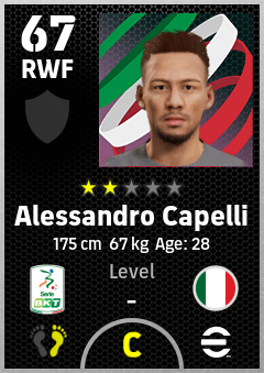 . Alessandro Capelli is a Right Wing Forward footballer from Italy who plays for Padova Br in eFootball 2026.