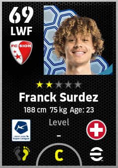. Franck Surdez is a Left Wing Forward footballer from Switzerland who plays for Sion Rw in eFootball 2026.