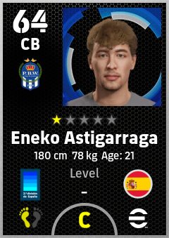 . Eneko Astigarraga is a Center Back footballer from Spain who plays for Vasco Gipuzkoa Ab Ii in eFootball 2026.