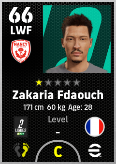 . Zakaria Fdaouch is a Left Wing Forward footballer from France who plays for As Nancy-Lorraine in eFootball 2026.