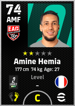 . Amine Hemia is a Attacking Midfielder footballer from France who plays for En Avant Guingamp in eFootball 2026.