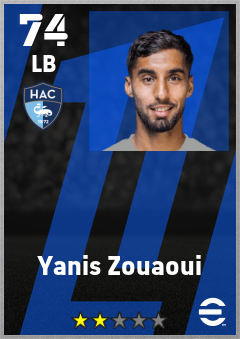 . Yanis Zouaoui is a Left Back footballer from France who plays for Havre Ac in eFootball 2026.