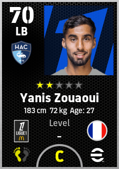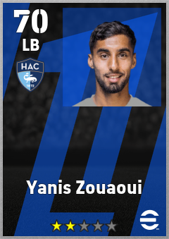 . Yanis Zouaoui is a Left Back footballer from France who plays for Havre Ac in eFootball 2026.