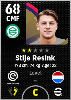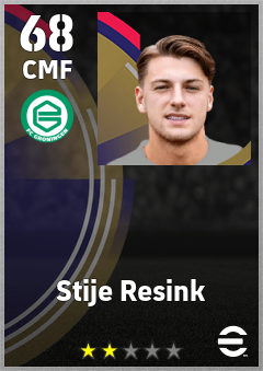 . Stije Resink is a Center Midfielder footballer from Netherlands who plays for Fc Groningen in eFootball 2026.