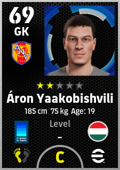 . Áron Yaakobishvili is a Goalkeeper footballer from Hungary who plays for Andorra La Vella Aar in eFootball 2026.