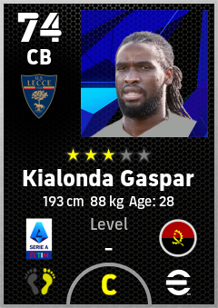 . Kialonda Gaspar is a Center Back footballer from Angola who plays for Lecce Gr in eFootball 2026.