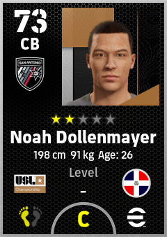 . Noah Dollenmayer is a Center Back footballer from Dominican Republic who plays for San Antonio Fc in eFootball 2026.