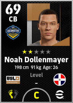 . Noah Dollenmayer is a Center Back footballer from Dominican Republic who plays for El Paso Locomotive Fc in eFootball 2026.