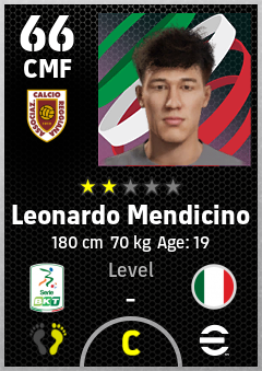 . Leonardo Mendicino is a Center Midfielder footballer from Italy who plays for Reggio Emilia G in eFootball 2026.
