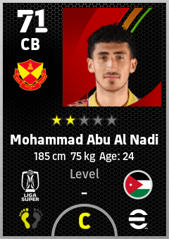 . Mohammad Abu Al Nadi is a Center Back footballer from Jordan who plays for Selangor Fc in eFootball 2026.