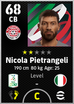 . Nicola Pietrangeli is a Center Back footballer from Italy who plays for Südtirol Br in eFootball 2026.