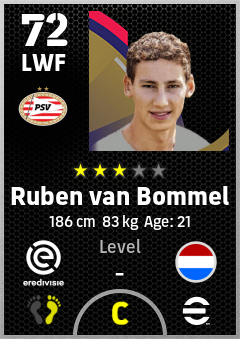 . Ruben Van Bommel is a Left Wing Forward footballer from Netherlands who plays for Psv in eFootball 2026.