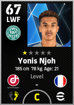 . Yonis Njoh is a Left Wing Forward footballer from France who plays for Viborg Gh in eFootball 2026.