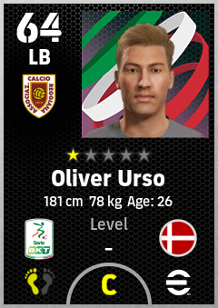 . Oliver Urso is a Left Back footballer from Denmark who plays for Reggio Emilia G in eFootball 2026.