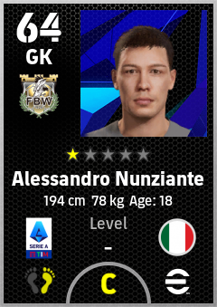 . Alessandro Nunziante is a Goalkeeper footballer from Italy who plays for Udinese Calcio in eFootball 2026.