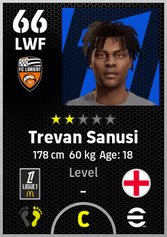 . Trevan Sanusi is a Left Wing Forward footballer from England who plays for Fc Lorient in eFootball 2026.