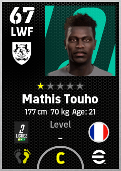 . Mathis Touho is a Left Wing Forward footballer from France who plays for Amiens Sc in eFootball 2026.
