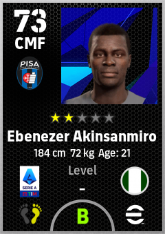 . Ebenezer Akinsanmiro is a Center Midfielder footballer from Nigeria who plays for Pisa Sporting Club in eFootball 2026.