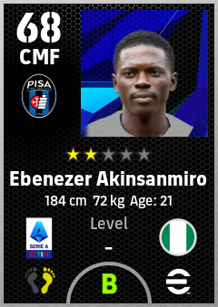 . Ebenezer Akinsanmiro is a Center Midfielder footballer from Nigeria who plays for Pisa Sporting Club in eFootball 2026.
