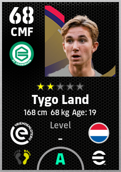 . Tygo Land is a Center Midfielder footballer from Netherlands who plays for Fc Groningen in eFootball 2026.