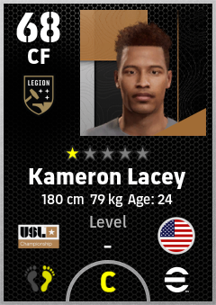. Kameron Lacey is a Center Forward footballer from United States who plays for Birmingham Legion Fc in eFootball 2026.