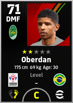 . Oberdan is a Defensive Midfielder footballer from Brazil who plays for Jeonju G in eFootball 2026.