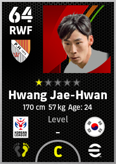 . Hwang Jae-Hwan is a Right Wing Forward footballer from Korea Republic who plays for Pohang Rb in eFootball 2026.