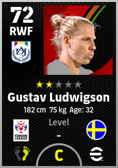 . Gustav Ludwigson is a Right Wing Forward footballer from Sweden who plays for Daejeon Rgw in eFootball 2026.