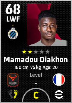 . Mamadou Diakhon is a Left Wing Forward footballer from France who plays for Brugge Bz in eFootball 2026.