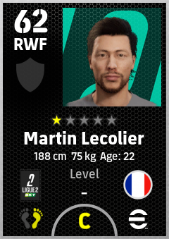 . Martin Lecolier is a Right Wing Forward footballer from France who plays for Us Boulogne Co in eFootball 2026.