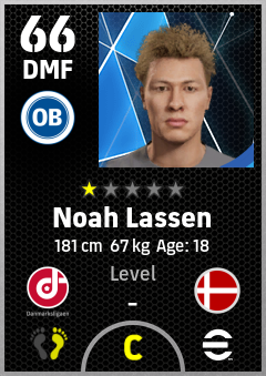 . Noah Lassen is a Defensive Midfielder footballer from Denmark who plays for Odense Hb in eFootball 2026.