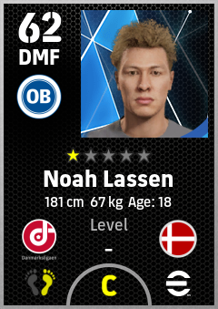 . Noah Lassen is a Defensive Midfielder footballer from Denmark who plays for Odense Hb in eFootball 2026.