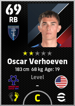 . Oscar Verhoeven is a Right Back footballer from United States who plays for San Diego Bw in eFootball 2026.