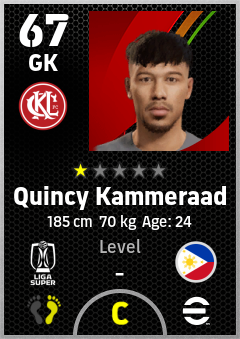 . Quincy Kammeraad is a Goalkeeper footballer from Philippines who plays for Kuala Lumpur City Fc in eFootball 2026.