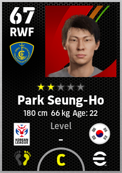 . Park Seung-Ho is a Right Wing Forward footballer from Korea Republic who plays for Incheon Bb in eFootball 2026.