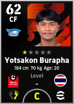 . Yotsakon Burapha is a Center Forward footballer from Thailand who plays for Chonburi Fc in eFootball 2026.