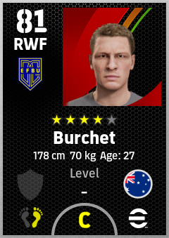 . Burchet is a Right Wing Forward footballer from Australia who plays for Efb United in eFootball 2026.