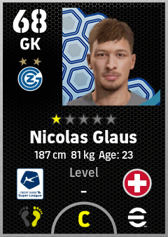 . Nicolas Glaus is a Goalkeeper footballer from Switzerland who plays for Zürich Bw in eFootball 2026.
