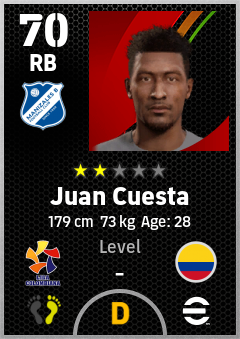 . Juan Cuesta is a Right Back footballer from Colombia who plays for Manizales B in eFootball 2026.