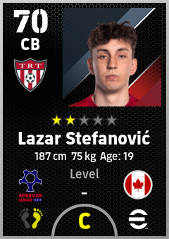 . Lazar Stefanović is a Center Back footballer from Canada who plays for Toronto Rw in eFootball 2026.