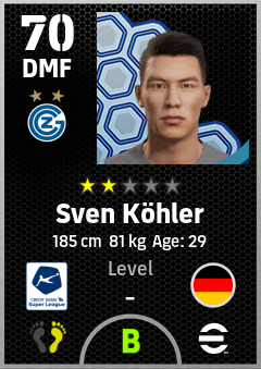 . Sven Köhler is a Defensive Midfielder footballer from Germany who plays for Zürich Bw in eFootball 2026.