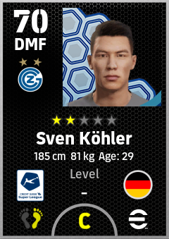 . Sven Köhler is a Defensive Midfielder footballer from Germany who plays for Zürich Bw in eFootball 2026.