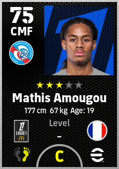 . Mathis Amougou is a Center Midfielder footballer from France who plays for Rc Strasbourg Alsace in eFootball 2026.