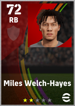 . Miles Welch-Hayes is a Right Back footballer from England who plays for Free in eFootball 2026.