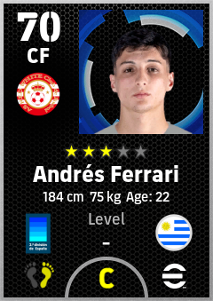 . Andrés Ferrari is a Center Forward footballer from Uruguay who plays for Gijón Rb in eFootball 2026.
